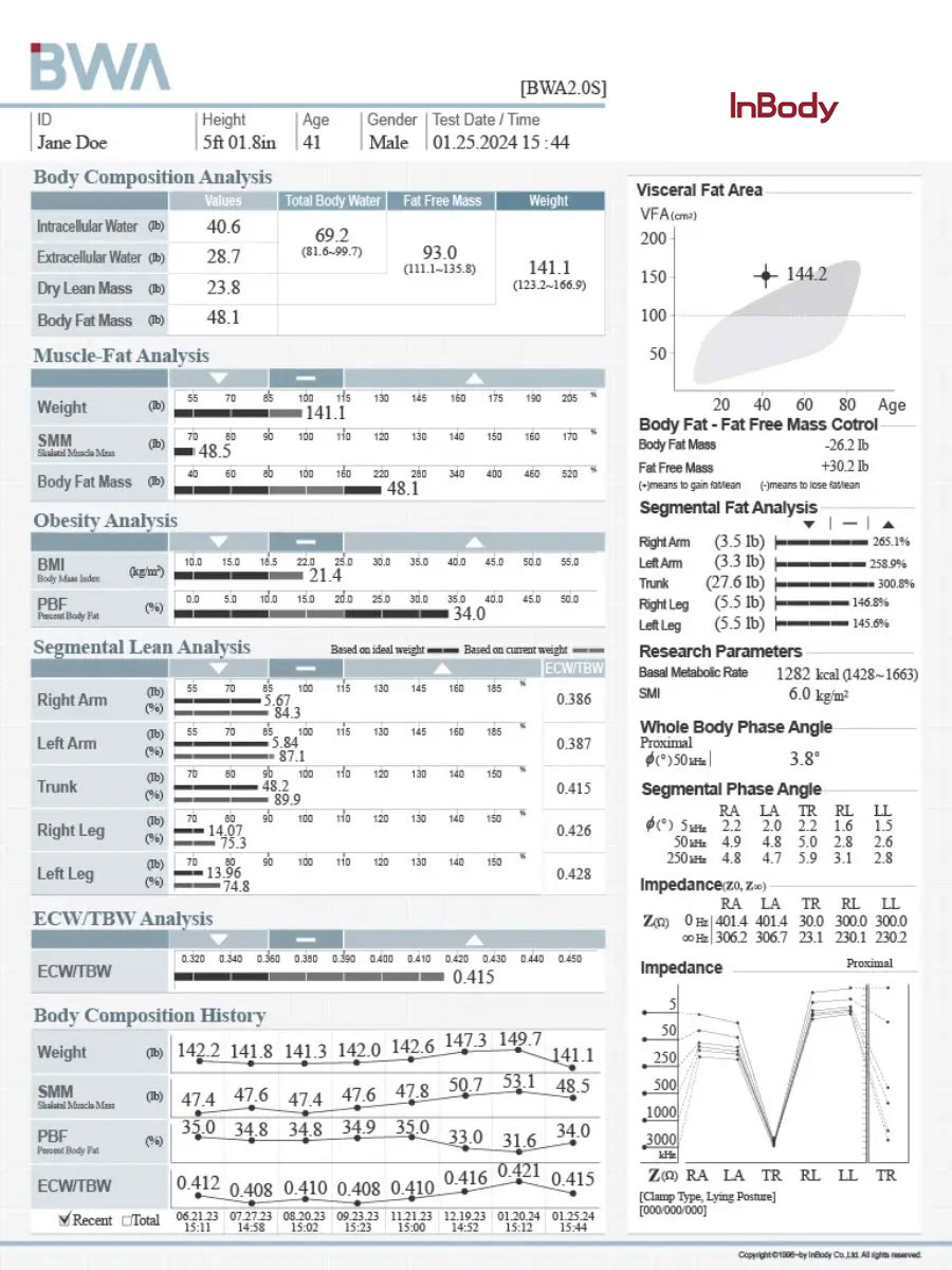 Additionally, BWA 2.0 can be used for a broader range of subjects, including amputee patients. The InBody results remain accessible for this patient group as well.